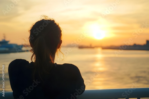 nature, background, travel, calm, quiet, sea, tranquil, optimism, port, outdoors, view, hours, thoughtful, freedom, sky, hope, ocean, girl, inspirational, woman, peace, evening, gold, back, water, serene, ponytail, solitude, relaxation, boat, sunset, contemplation, silhouette, scenic, shadow, horizon, journey, peaceful, light, ferry, hair, summer, landscape, beautiful, texture