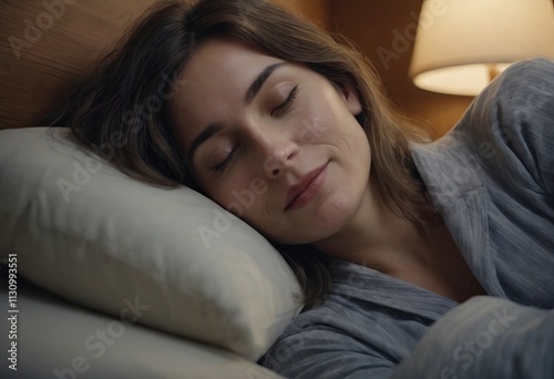 Woman sleeping in a bedroom, sweet dreams, girl relaxing, relaxation at home, dreaming asleep person