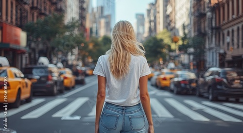 woman, city, street, walking, urban, travel, fashion, blond, hair, summer, day, crosswalk, road, jean, t-shirt, urban life, traveler, tour tourism, lifestyle, modern, people, holiday maker, view, perspective, city landscape, building, skyscraper, city life, commuter, freedom, relaxation, motivation, independent, ambitious, confident, determination, focused, exploring, discovering, destination, trip