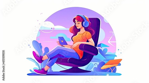 Woman using a tablet computer for leisure flat illustration - Generative AI.