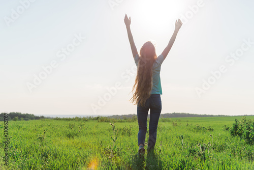 woman, beauty, caucasian, direction, field, girl, travel, meadow, nature, summer, sun, walking, backpack, bright, flower, freedom, tour tourism, horizon, horizontal, idea, earth, landscape, moving, man, sky, loneliness, spring, vacation, photographer, people, adult