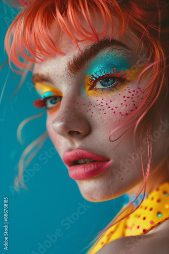 woman, crazy, make-up, minimalist, abstract, background, beauty, colourful, artistic, expression, portrait, face, creative, fashion, vibrant, modern, aesthetic, style, bold, design, cosmetic, glamour, unique, experimental, head shot, visual, trendy, contemporary, playful, fun, striking, character, personality, detail, look, model, female, eye-catching, mood, emotion, concept, chic, confident, fresh, captivating