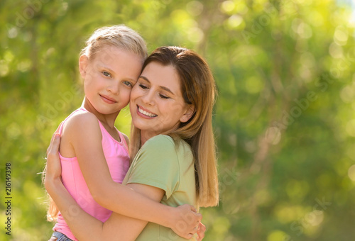 Woman with cute little daughter in park