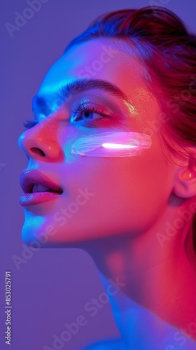 woman, light, painted, face, skin, cream, care, illuminated, beauty, bright, cosmetic, female, skincare, routine, glow, product, cosmetic, radiant, glowing, health, treatment, facial, industry, lighting, shine, effect, application, regime, enhancement, therapy, source, beam, procedure, painting, mask, brand, practice, illumination
