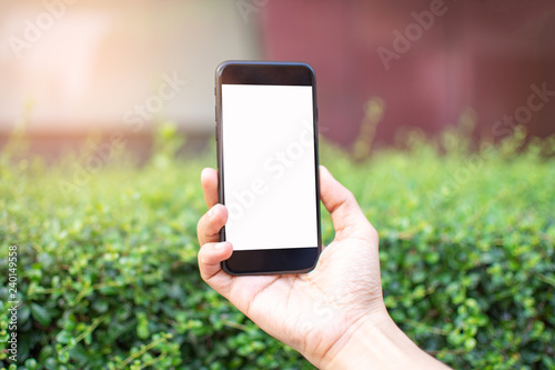 woman's hand holding smart phone with blur background. selective focus and soft focus.
