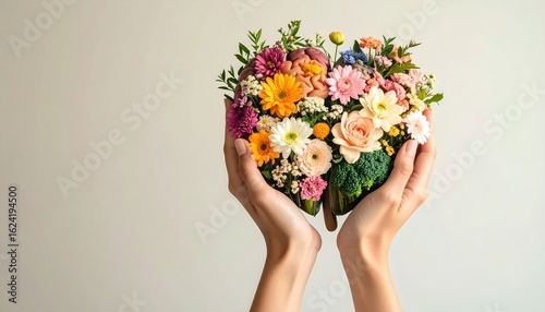 flower, floral, nubes, love, romance, arrangement, bouquet, hand, woman, holding, gift, nature, fresh, colourful, bloom, blooming, spring, summer, beauty, wellness, health, care, celebrate, anniversary, birthday, february 14, wedding, decoration, creative, unique, studio, isolated, white, pastel, bright, vibrant, organic, gratitude, appreciation, kindness, positive, happiness, well-being, compassion, conceptual