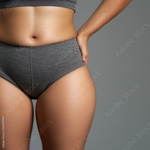 curve, waist, feminine, pose, slim, movement, wellness, confidence, skin, trendy, indoor, model, fitness, athletic, fabric, garment, grey, studio, body, clothing, closeup, shape, cropped, female, portrait, woman, healthy, lifestyle, concept, seamless, style, fashion, texture, thigh, beauty, activewear, leggings, natural, top