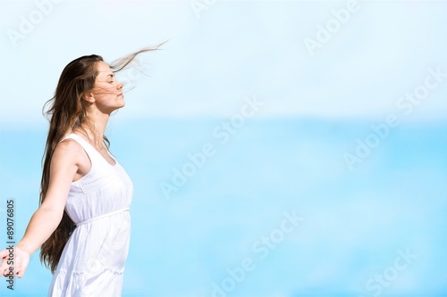 woman, freedom, arm, beach, open, relaxation, travel, girl, white, sea, blissful, bliss, asian, life, dress, enjoying, holiday, people, summer, young, person, water, wellness, sundress, adult, sunshine, hope, mixed race, outdoors, carefree