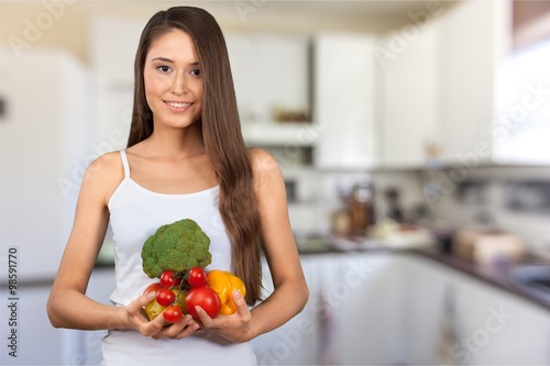 woman, healthy lifestyle, healthy eating, eating, dieting, food, vegetable, people, vegetarian food, happiness, cheerful, beauty, lifestyle, smiling, beautiful, young adult, one person, energy, vitality, holding, well-being, youth culture, comfortable, female, enjoyment, organic, portrait, epicure, ingredient, freshness