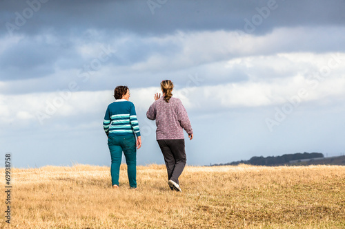 girl, woman, mother, daughter, mature, family, walking, talking, exploring, friends, caucasian, outdoors, rural, nature, reserve, landscape, field, photo, image