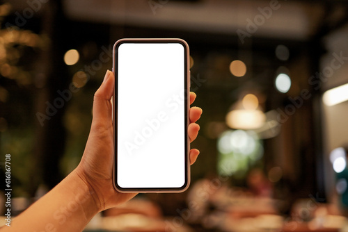 Women's hands holding cell telephone blank copy space screen. smartphone with blank white screen isolated on white background . smart phone with technology concept
