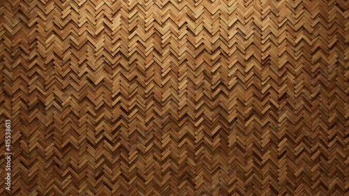 Wood Block Wall background. Mosaic Wallpaper with Light and Dark Timber Herringbone tile pattern. 3D Render