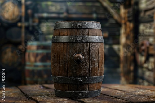 Wooden barrel on a table and textured background