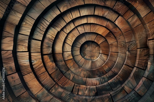 Wooden blocks arranged in a captivating concentric pattern, creating a visually striking design