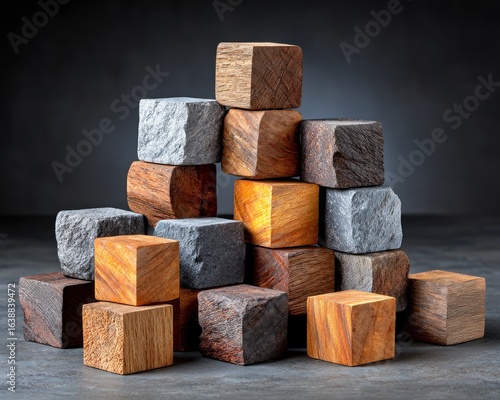 pyramid, block, wood, stack, geometric, design, structure, colourful, textured, art, cube, pattern, arrangement, natural, shape, composition, still life, light, dark