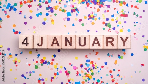 Wooden Blocks with Date 4 January. Calendar for birthday, anniversary or appointment on solid colored background