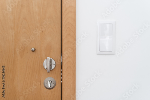 renovation, light, switch, entry, door, lock, cosy, safety, closed, building, modern, wooden, flat, handle, concept, reinforced, large, element, home, house, interior, design, security, protection, architecture, exit, metal, technology, private, inside, hotel, knob, residential, indoor, access, keyhole, system, office, wall, simple, detail, control, classic, comfortable, install, motel, fixing, latch, apartment