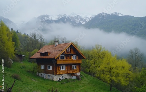 house, landscape, mountain, nature, tree, green, forest, building, architecture, travel, scenery, view, cloud, fog, wooden, home, vale, sky, hill, chalet, bungalow, peak, tour tourism, scenic, summer, spring, tranquil, peaceful, europa, alpine, meadow, panorama, vacation, explore, adventure, wanderlust, destination, hiking, earth, beautiful, amazing, photo, picture, background, environment, weather, overcast