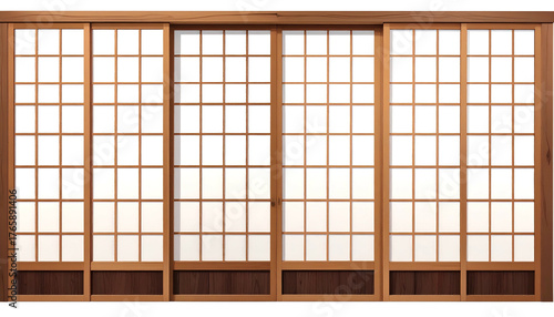 Wooden sliding doors with a grid pattern, translucent panels, and a natural, minimalist design