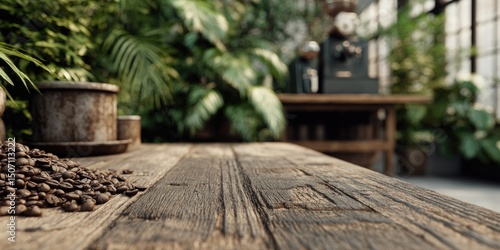 wooden table in the garden