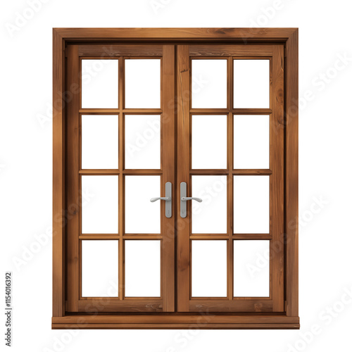 wooden window isolated on transparent background, Clipping Path