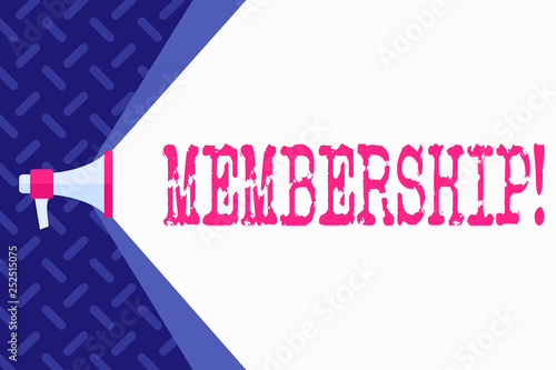 Word writing text Membership. Business concept for Being member Part of a group or team Join organization company