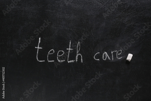Words teeth care chalk hand drawn on blackboard