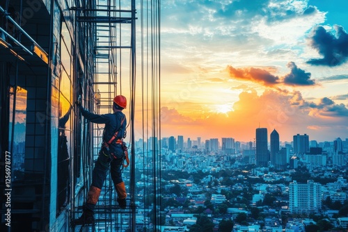 men at work, window cleaning, highrise, building, city, silhouette, sunset, construction, safety-gear, harness, urban, skyline, maintenance, professional, architecture, glasses, equipment, labor, trade, industry, service, sky, cloud, operation, view, landscape, male, hard hat, safety, height, job, task, support, teamwork, city landscape, technician, structure, urban area, sunrise, evening, working, process, image, labourer, profile