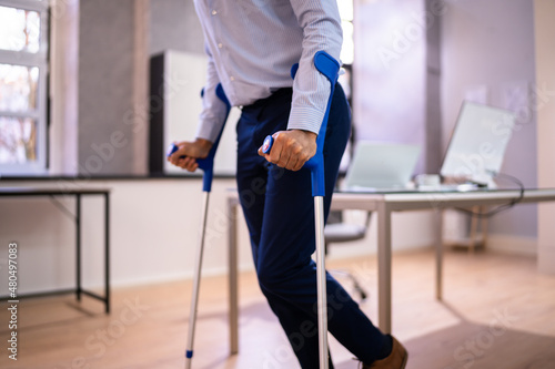 crutch, crutch, disabled, workplace, rehabilitation, men at work, businessman, desk, handicapped, boss, office, handicap, african, compensation, pain, leg, accident, american, man, black