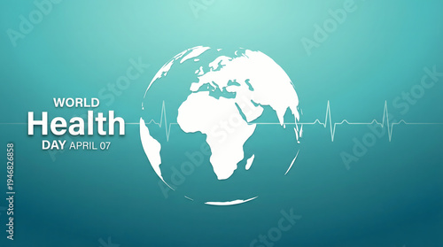 World Health Day Concept with Globe and Heartbeat Line on Blue Background