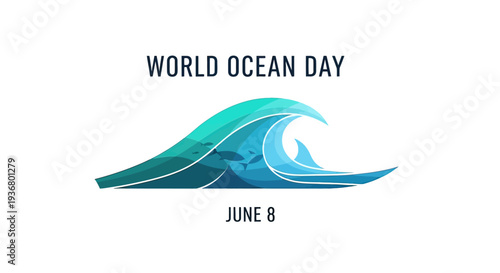 wave, ocean, sea, blue, green, graphic, illustration, stylised, design, art, water, surf, tide, swell, ripple, movement, motion, dynamic, fluid, liquid, nature, environment, conservation, awareness, event, holiday, celebration, date, june, eighth, typography, text, font, colourful, vibrant, stylish, modern, contemporary, simple, minimal, clean, crisp, sharp, precise, detailed, realistic, abstract, symbolic