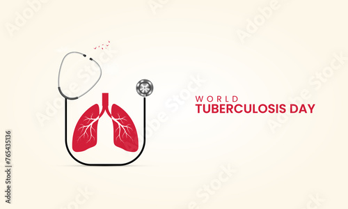 World TB day, World Tuberculosis day, Lungs and realistic stethoscope, design for social media banner, poster vector illustration.