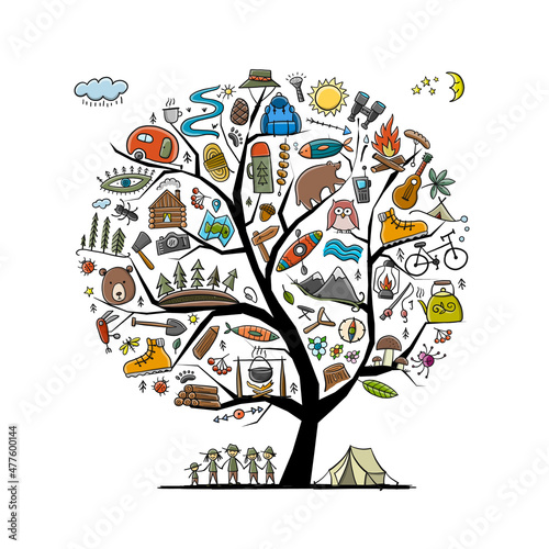 vector, illustration, camping, tour tourism, travel, nature, adventure, day, tent, tree, forest, trip, vacation, map, camp, fire, summer, campfire, background, tracking, equipment, car, tool, voyage, leisure, fireplace, mountain, relax, binocular, design, survival, hiking, holiday, landscape, grill, picnic, river, boat, bike, bear, fish, boot, trailer, backpack, wild, people, concept, icon, logotype