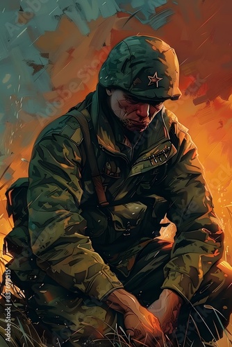 soldier, war, battle, military, army, combat, weapon, uniform, helmet, gun, man, male, caucasian, fight, battlefield, conflict, history, hero, courage, sacrifice, freedom, patriotism, world war, painting, illustration, art