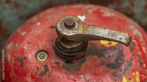 Worn-Out Fire Extinguisher with Dents, Symbol of Past Use