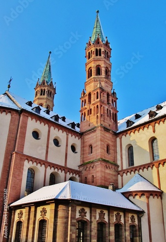 würzburg, cupola, cathedral, church, church tower, middle-ages, historic, winter, snow, azur, religion