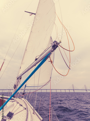 Yacht and oresund bridge between denmark sweden