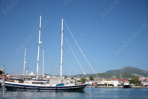 yacht, boat, sky, pier, sea, ship, coast, luxury, port, marina, water, dock, travel, europa, vessel, tour tourism, nautical, recreation, sunny, club, summer, harbor, rest, seascape, coastline, bay, ocean, blue, sailing, sailboat, sail, harbor, boat, vacation, island, yacht