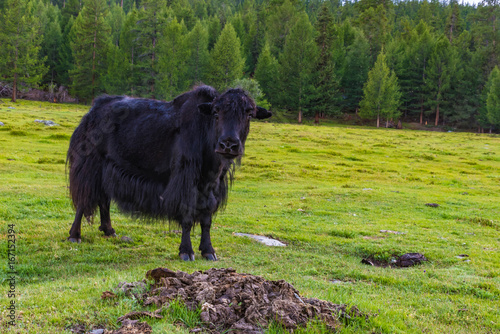 mongolia, asia, altai, mountain, nomad, yak, rind, black, meadow, forest, stock farming, hike, trekking