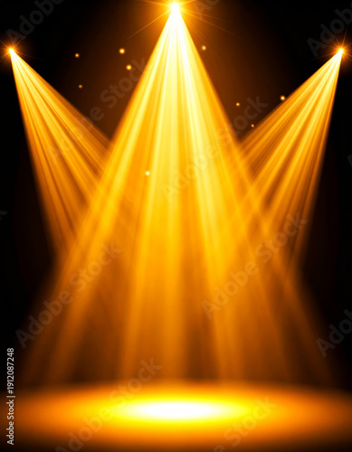 Yellow and Orange Stage Spotlight, God Light Rays Shining from Above Background Illustration