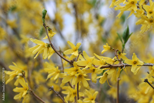 Yellow blossom flowers with green background.