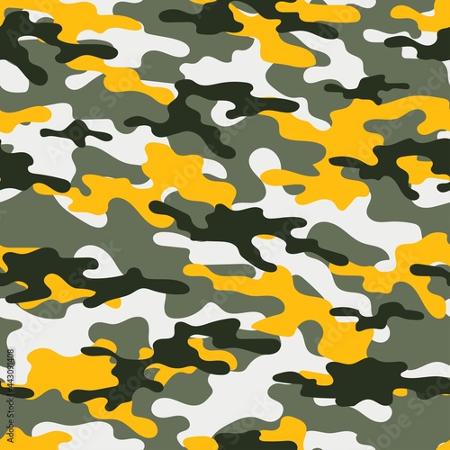 yellow Camouflage texture seamless pattern. Abstract modern military camo background for fabric and fashion textile print. Vector illustration.