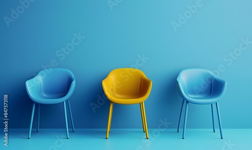 Yellow chair standing out from the crowd. Business concept. 3D rendering
