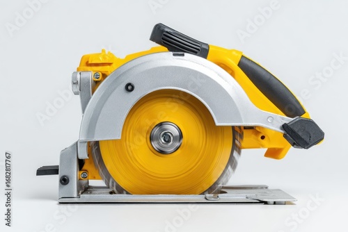 saw, circular, power, yellow, grey, tool, construction, equipment, cutting, electric, work, bricolage, home, improvement, hardware, machine, tool, angled, profile, industrial, portable, safety, safety equipment, blade, handle, motor, housing, metal, plastic, ergonomic, detail, closeup, technology, efficiency, precision, cutting edge, power saw, workplace, workstation