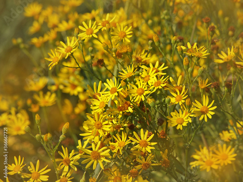 Yellow flowers of ragwort, Jacobaea vulgaris