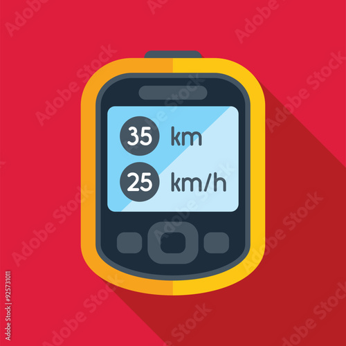 global positioning system, navigation, device, distance, speed, screen, kilometre, kilometre, technology, travel, direction, location, map, route, transport, transportation, electronic, contraption, modern, communication, information, digital, display, destination, tracking, road, trip, journey, tour tourism, adventure, explore, outdoors, activity, sport, fitness, running, cycling, hiking, mobile, app, icon, symbol, vector, illustration, flat, design, background, red, yellow