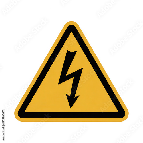 Yellow hazard lightning bolt sign, isolated on transparent background