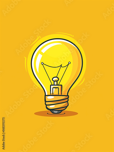 Yellow light Bulb. Cartoon flat style, Vector illustration. Logo, icon, print, design template