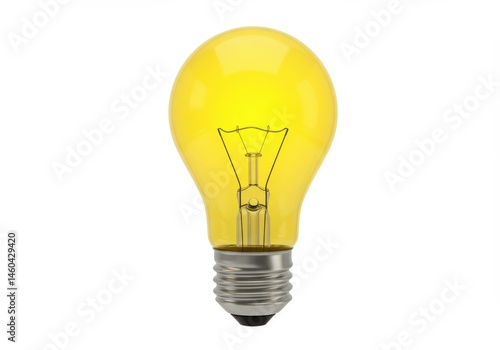 Yellow light bulb with visible filament isolated on white background