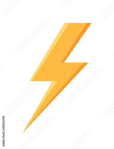 Yellow lightning icon concept. Electricity and energy, power. Thunder strike sign, meteorology. Template, layout and mock up. Cartoon flat vector illustration isolated on white background